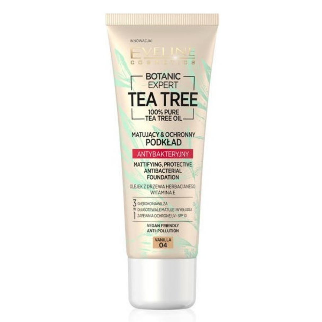 Discover flawless skin with Eveline Botanic Expert Tea Tree Foundation Antibacterial Mattifying in shade 04 Vanilla. This lightweight, oil-free formula not only provides buildable coverage but also keeps your skin healthy and fresh thanks to the antibacterial properties of tea tree oil. Say goodbye to shine and hello to a matte finish that lasts all day. The infusion of botanical extracts ensures a natural look and feel without clogging pores. Perfect for those with oily or acne-prone skin, this foundation is a must-have for a radiant complexion.